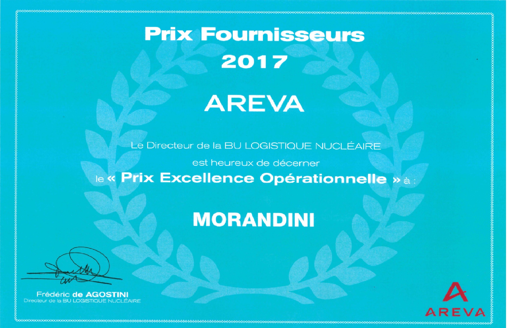 Forgiatura Morandini ha di recente ricevuto da parte del gruppo Areva un riconoscimento per la sua eccellenza operativa.